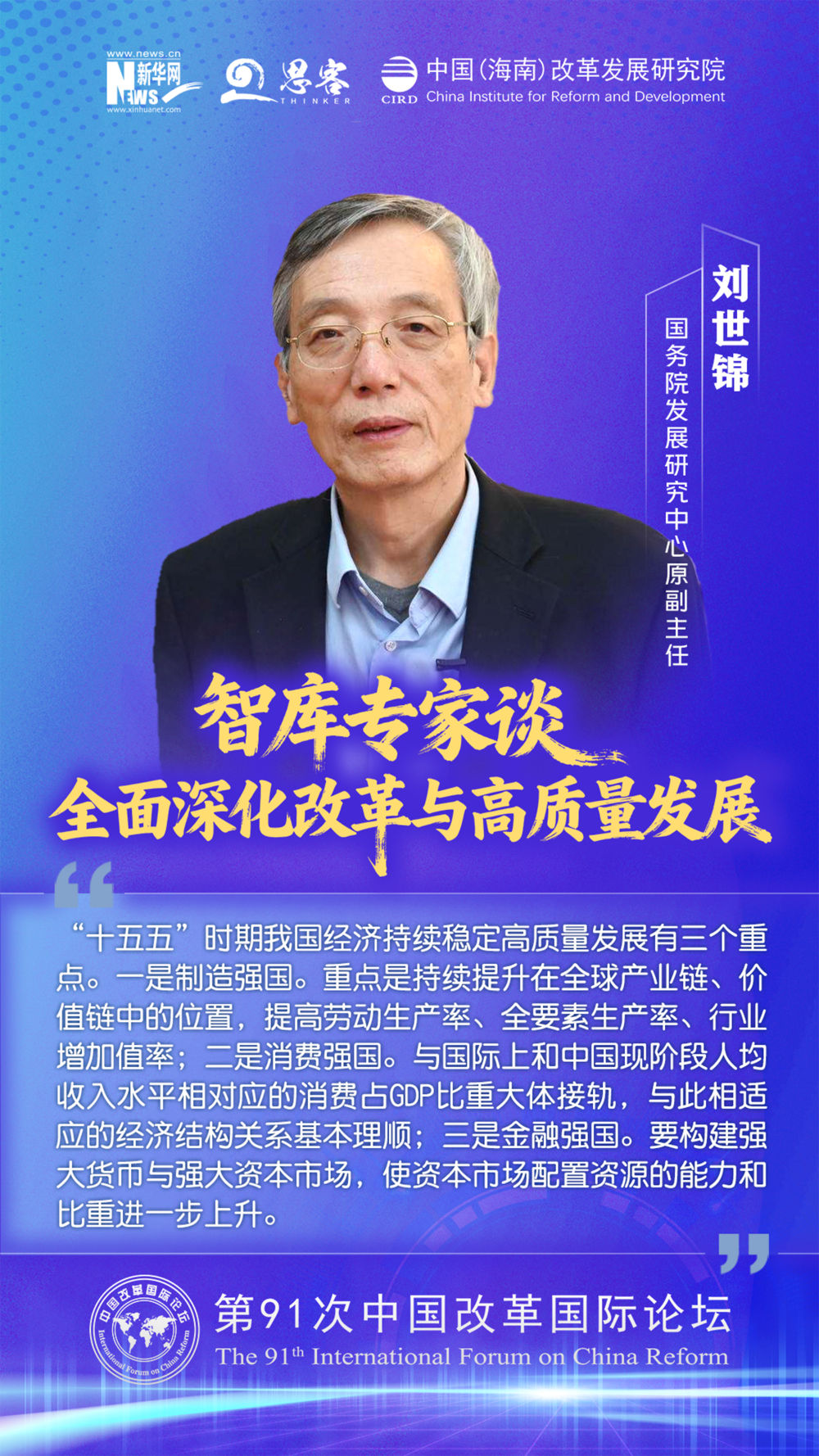 “十五五”时期我国经济持续稳定高质量发展有三个重点。一是制造强国。重点是持续提升在全球产业链、价值链中的位置,提高劳动生产率、全要素生产率、行业增加值率;二是消费强国。与国际上和中国现阶段人均收入水平相对应的消费占GDP比重大体接轨,与此相适应的经济结构关系基本理顺;三是金融强国。要构建强大货币与强大资本市场,使资本市场配置资源的能力和比重进一步上升。